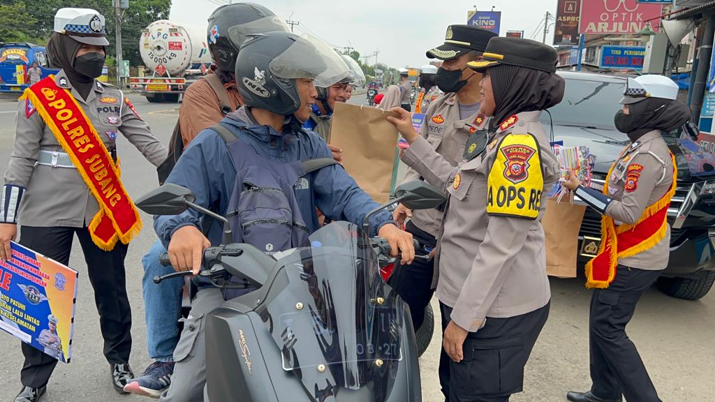 Dalam giat Operasi Keselamatan yang dilakukan oleh Kapolres Subang siang ini, AKBP Sumarni memberikan hadiah sebagai bentuk Apresiasi dari Kapolres Subang untuk pengendara R2 yang memakai Helm dan tertib berlalu lintas.