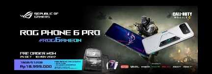 Pre-order ROG Phone 6 Pro tersedia bagi konsumen dengan harga Rp18.999.000 dan penawaran spesial yang terbatas mulai dari 24 Oktober 2022 sampai dengan 10 November 2022.
