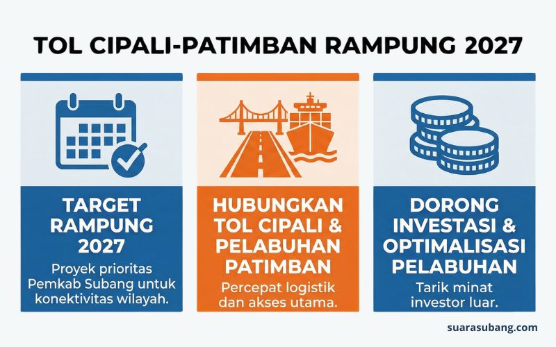 Pemerintah Kabupaten (Pemkab) Subang memberikan dukungan penuh terhadap percepatan pembangunan akses Tol Cipali-Patimban agar selesai pada 2027. Proyek strategis nasional ini diharapkan mampu menjadi magnet investasi yang memperkuat ekonomi daerah. Bupati Subang, Reynaldy Putra Andita, menegaskan bahwa kesiapan pemerintah daerah sangat krusial untuk menyokong kebutuhan infrastruktur tersebut agar mencapai target tepat waktu.
