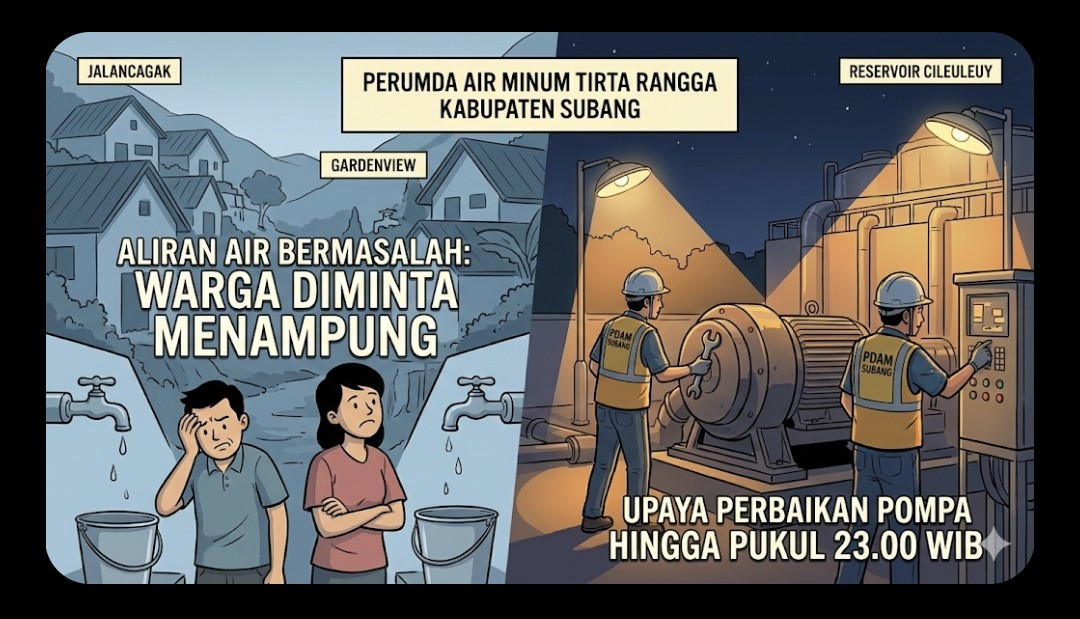 Di jam-jam krusial saat aktivitas rumah tangga sedang tinggi-tingginya—waktunya mandi sore, mencuci, dan memasak untuk makan malam—aliran air bersih dari Perumda Air Minum Tirta Rangga Kabupaten Subang justru dikabarkan bermasalah.